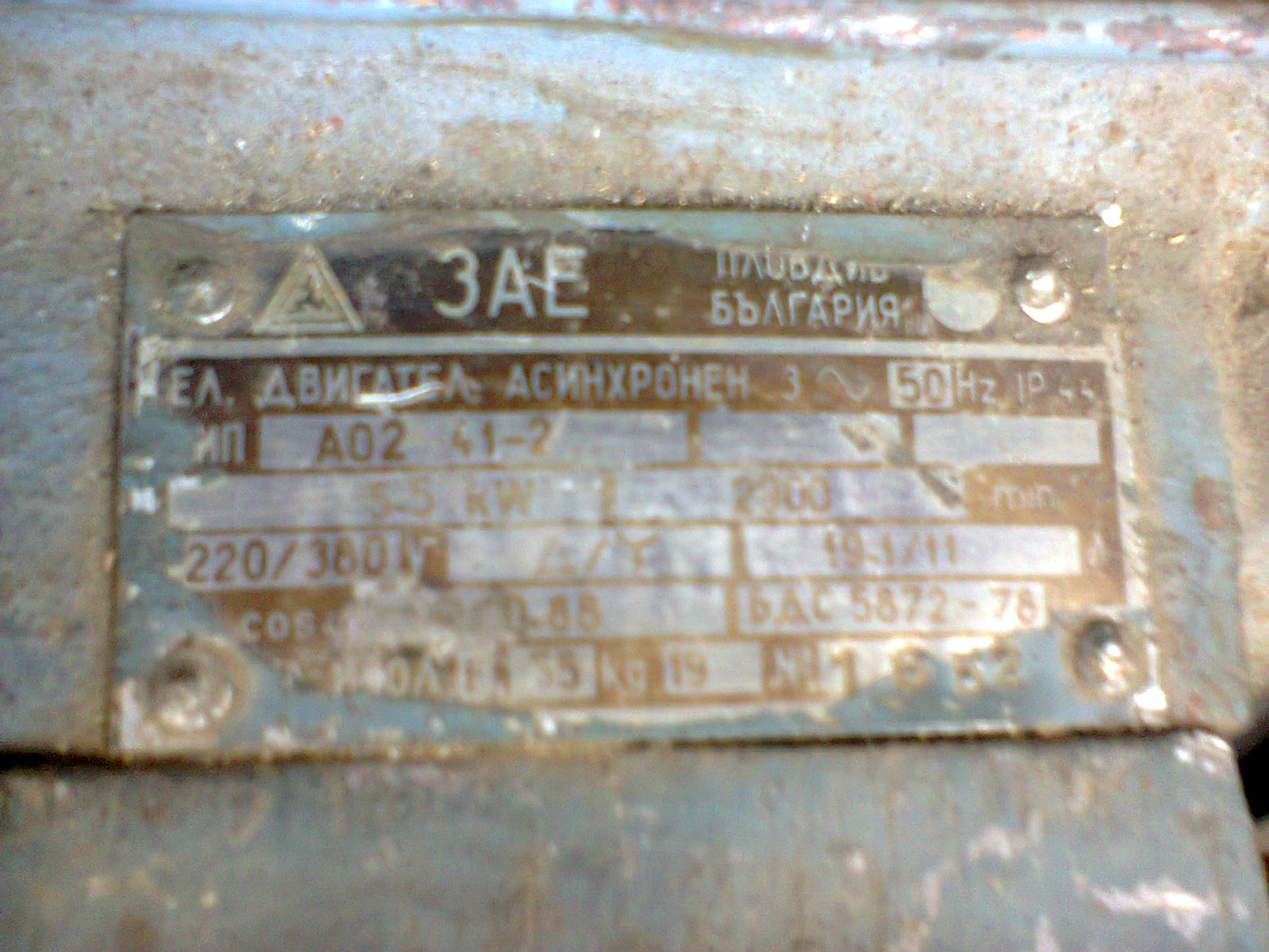 Нема време за проба, но щракнах 5,5 киловатовите. Не че кой знае какво се разбира, ама на звезда ще са. 7,5 киловатовия няма табела, но си е замостен за звезда.