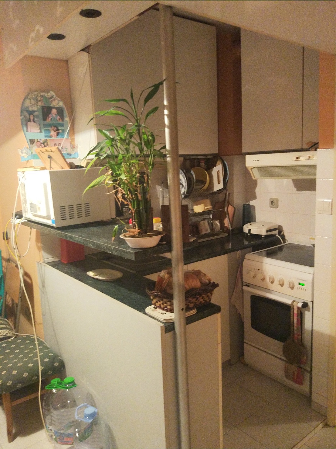 Ще се намира в ниша на мястото на бившето мокро помещение, което се лиши от две малки стенички (нищо не носещи) за да не получавам клаустрофобия когато се намирам вътре