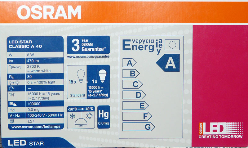 Виждат се лумените, които според написаното са 470 при 8W.