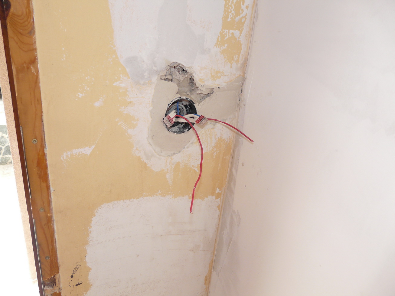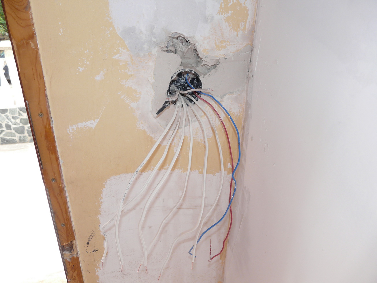 Аха, не си се стърпял и си коментирал вече, въпреки заканите! Прочети отново онова, което съм написал за гофретата и пробиването! При закрепване на каквото и да било в гипслартон, се използват дюбели, които се захващат в самия гипскартон. За целта се пробива само той. Както виждаш, в последствие си пробивам отворите за конзолни кутии точно върху гофрето. Досега не ми се е случило да пробия,срежа нито едно гофре !