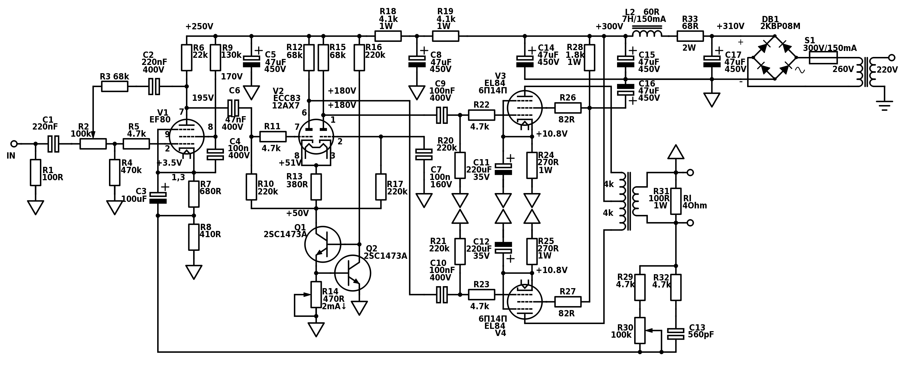 П.С. Ето ако имате интерес към схемата, каято проектирах. Първото е усилвателя, а второто е автоматизирана система за вкл/изкл. Идеята е при наличието на входен сигнал, да се активира първо отоплението и след 15сек и високото напрежение. При загуба на сигнал, RC веригата C6/R16 ще се разреди след около 15мин и ще изключи усилвателя. Идеята ми е да забавя високото напрежение, за да не излагам студеният катод на високи напрежения. При усилвателят разликата е в ултралинейното включване и захранващия блок.