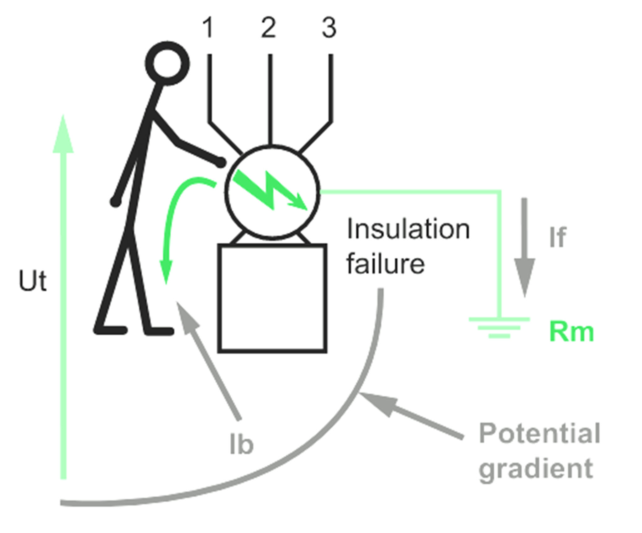 >Touching the part with hand would cause a current to pass through the hand and both feet of the exposed person.