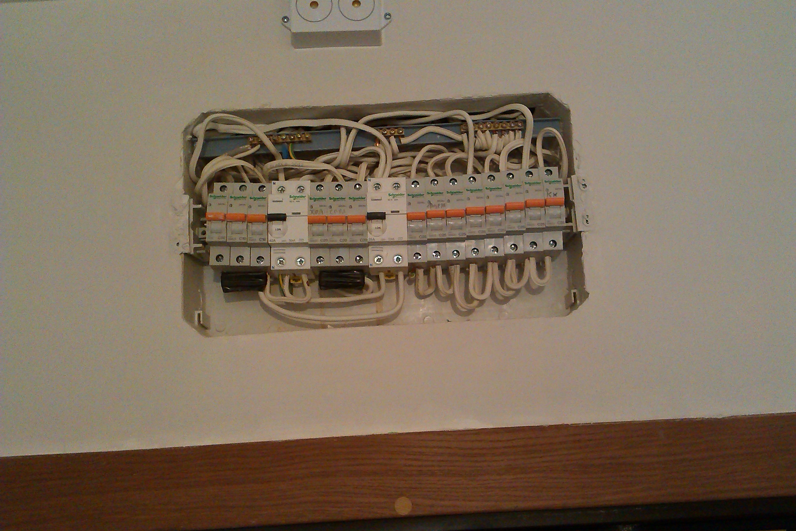 Седем последователни моста, първия ако не се лъжа с 4мм2 кабел, останалите на 2,5мм2. Сложи един гребен там да ти е спокойно, поне предпазителите са читави и инсталацията е с много кръгове. За ДТЗ не мога да преценя от снимката добре ли са.