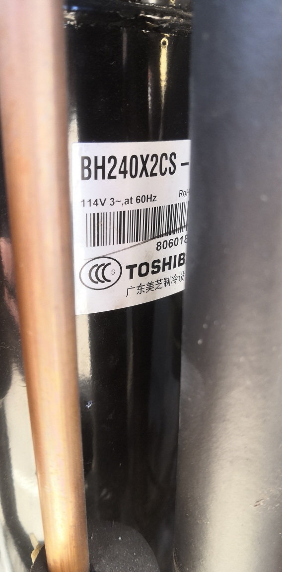 След като го разглобих установих, че компресора е Тошиба bh240x2cs и е 114 волта 60 херца с 3 кабела