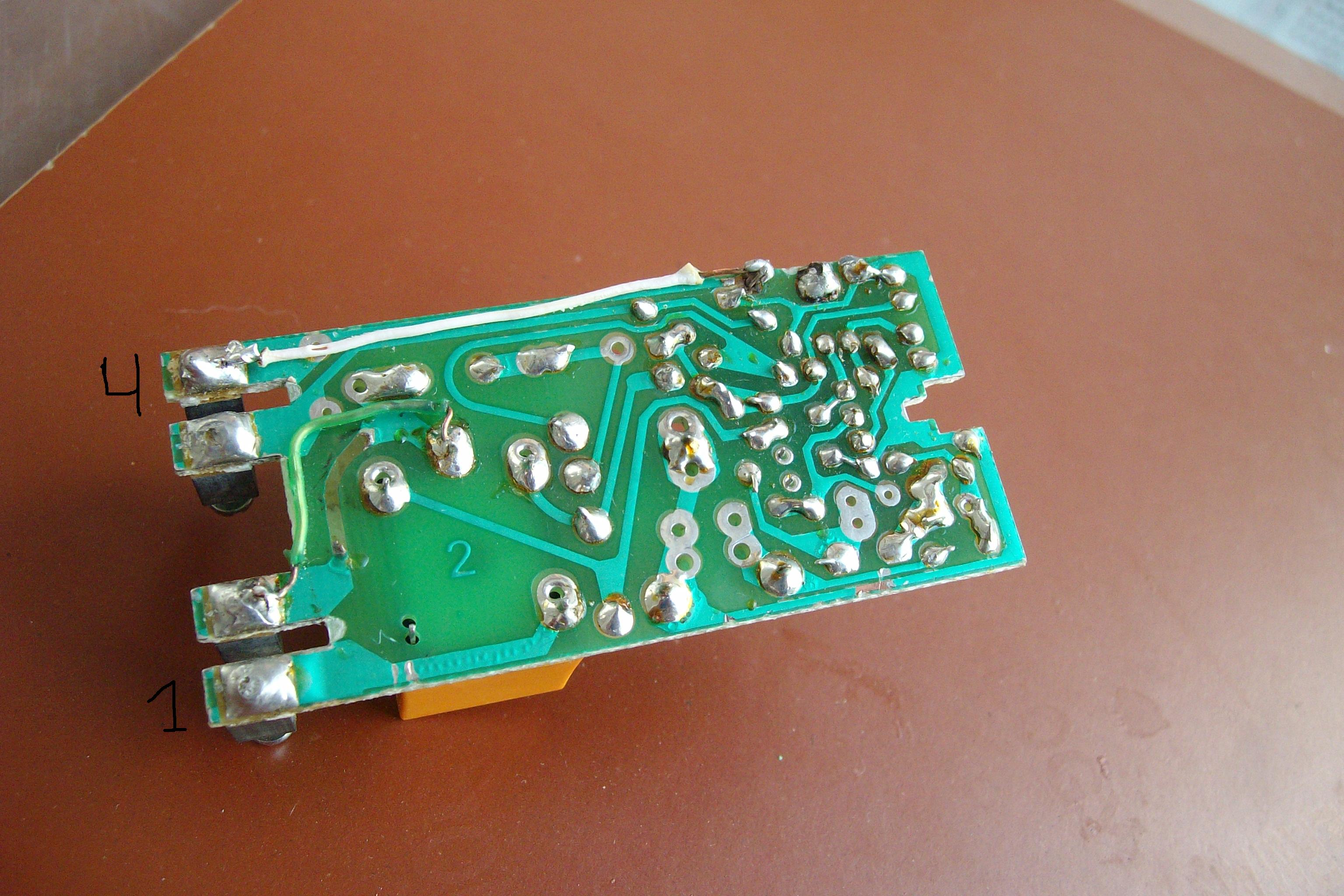 Ето снимки на платката му: Резистора след бялата жичка е сменян с 338 ома. Не знам колко е бил оригиналния, който явно е бил изгорял подобно на по малкия си събрат на една от снимките (до диода).