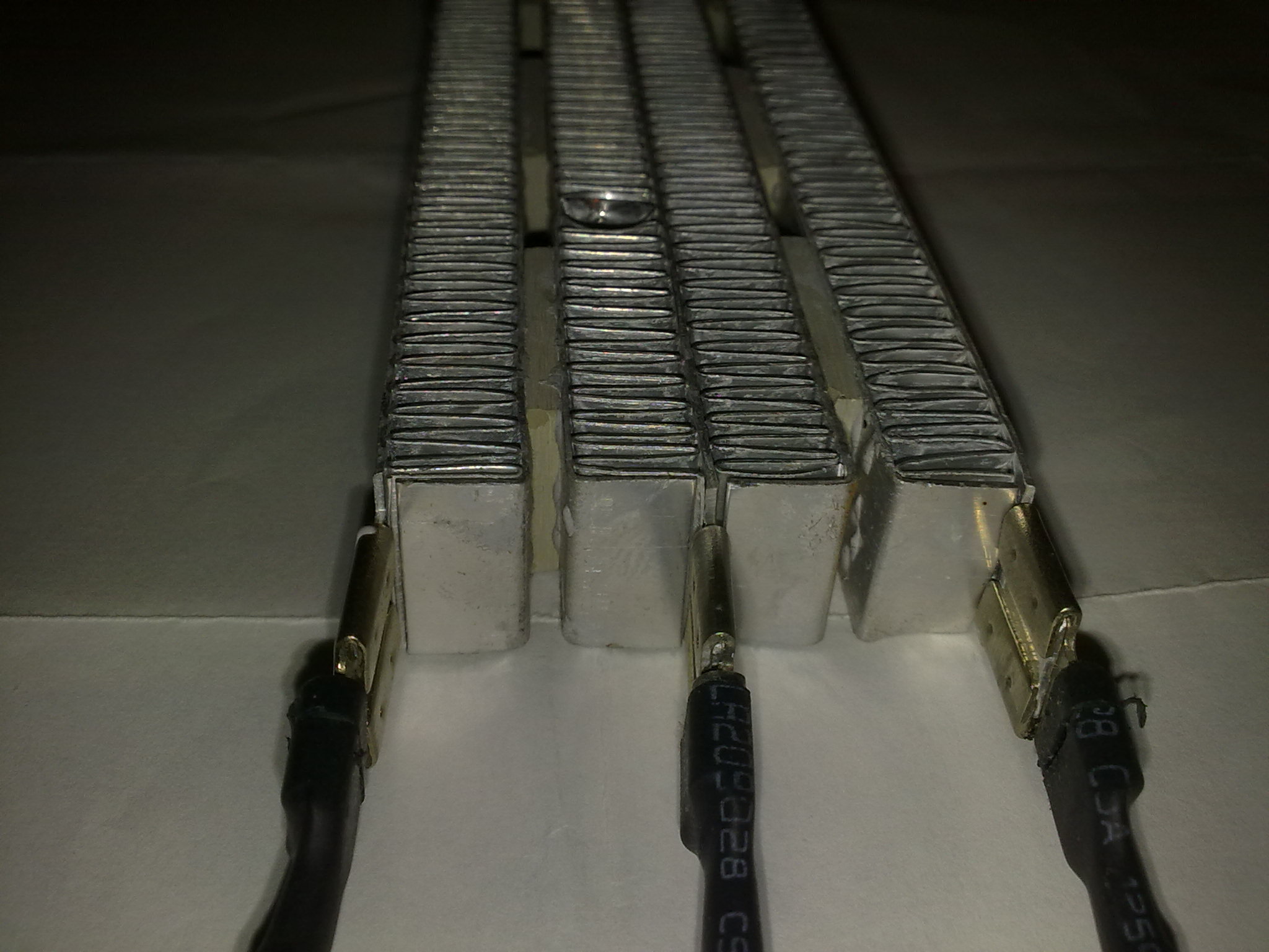 Хмм интересно може и така ама може и да не е изглеждат изолирани,има вариант нагревателя да контактува със пластина в десния си край и да имаме два с еднакво съпротивление и един (средния двойния)със двойно по малко такова.При това положение вариантите за регулиране на мощноста са доста повече предвид това че това е явно от стенна вентилаторна печка със дистанционно (предположение).Пък може и да не е така тея печки имат само 1000 и 2000 вата режими