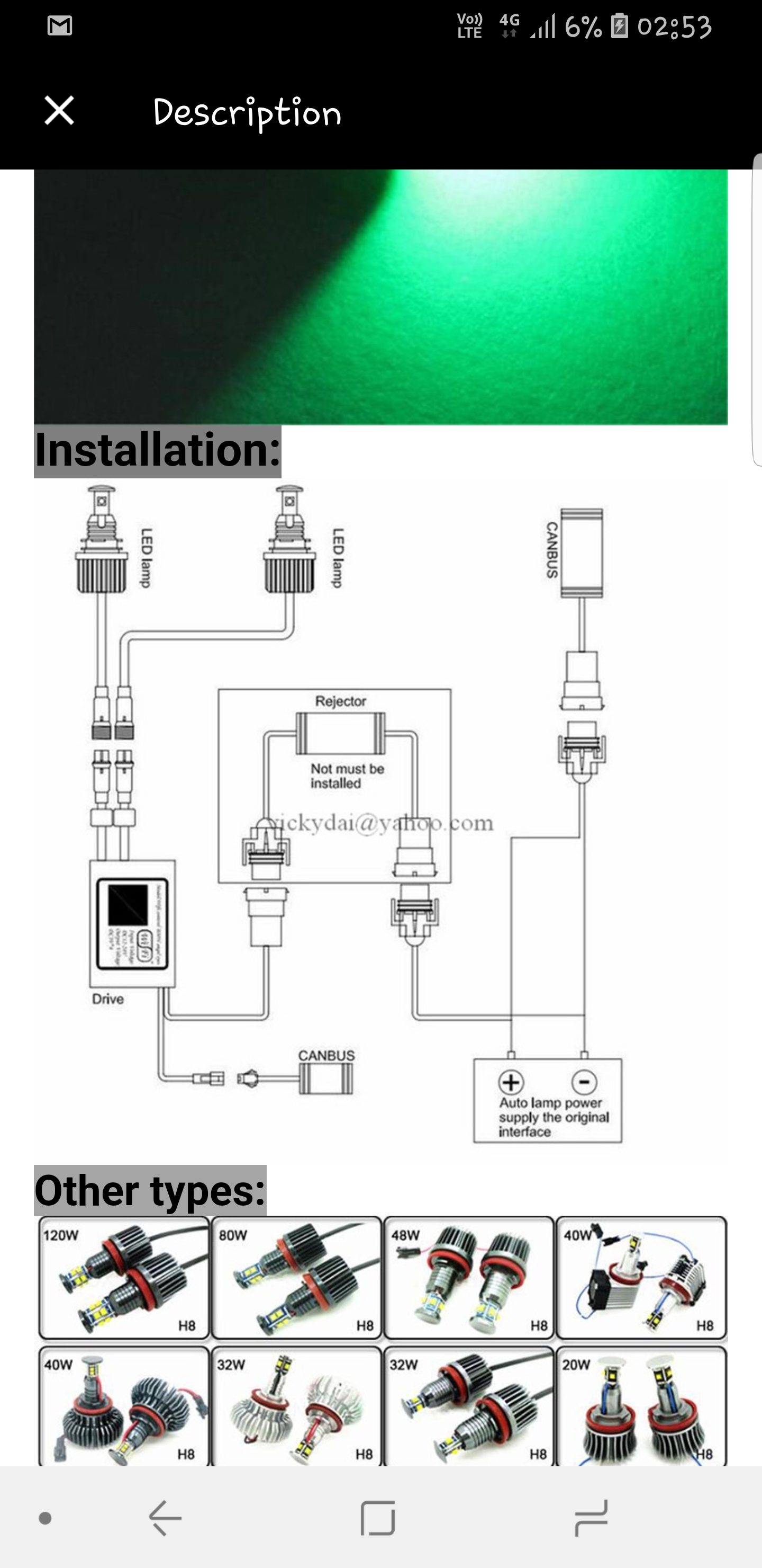 Здравейте колеги, заглавието малко подвежда, че е прост въпроса за решение, но всъщност идеята ми в малко по сложна. Значи става дума за т.н. Ангелски очи на BMW 1 серия, които светят с помощта на H8 халоген. Аз искам да подменя халогена с многоцветна LED (ще прикача линк) и цвета да може да се променя с дистанционно примерно. Линка обаче дава някаква странна схема която не мога да схвана, ако може някой да ми декодира китайското посление на схемата за да знам дали да поръчвам или да търся в бг нещо подобно. Става дума за това нещо http://s.aliexpress.com/2UrQzuMN?fromSns= а схемата прилагам по към поста.