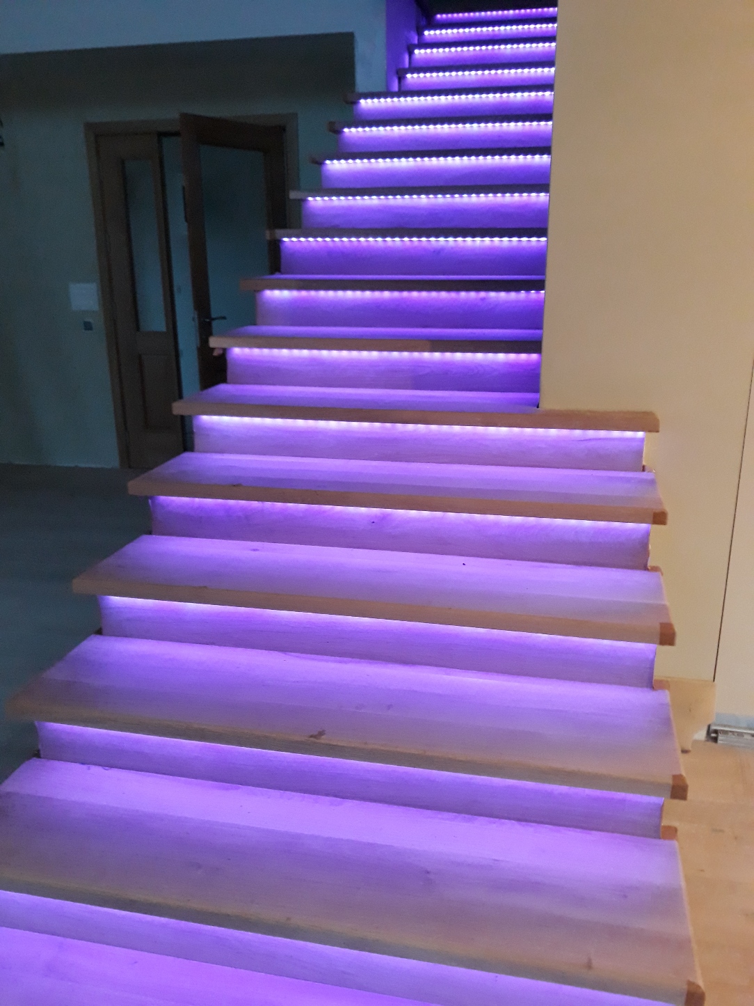 Здравейте, аз не разбирам, но повиках един електротехник, който май разбира колкото мен. Искам да си поставя лед лента на стълбите. Те са 21 броя и искам да поставя RGB лента IP65. Целта е да нямам много разход на ток, да не е прекалено силно осветлението, защото е само за декорация не е основно осветление. И сега питането е: