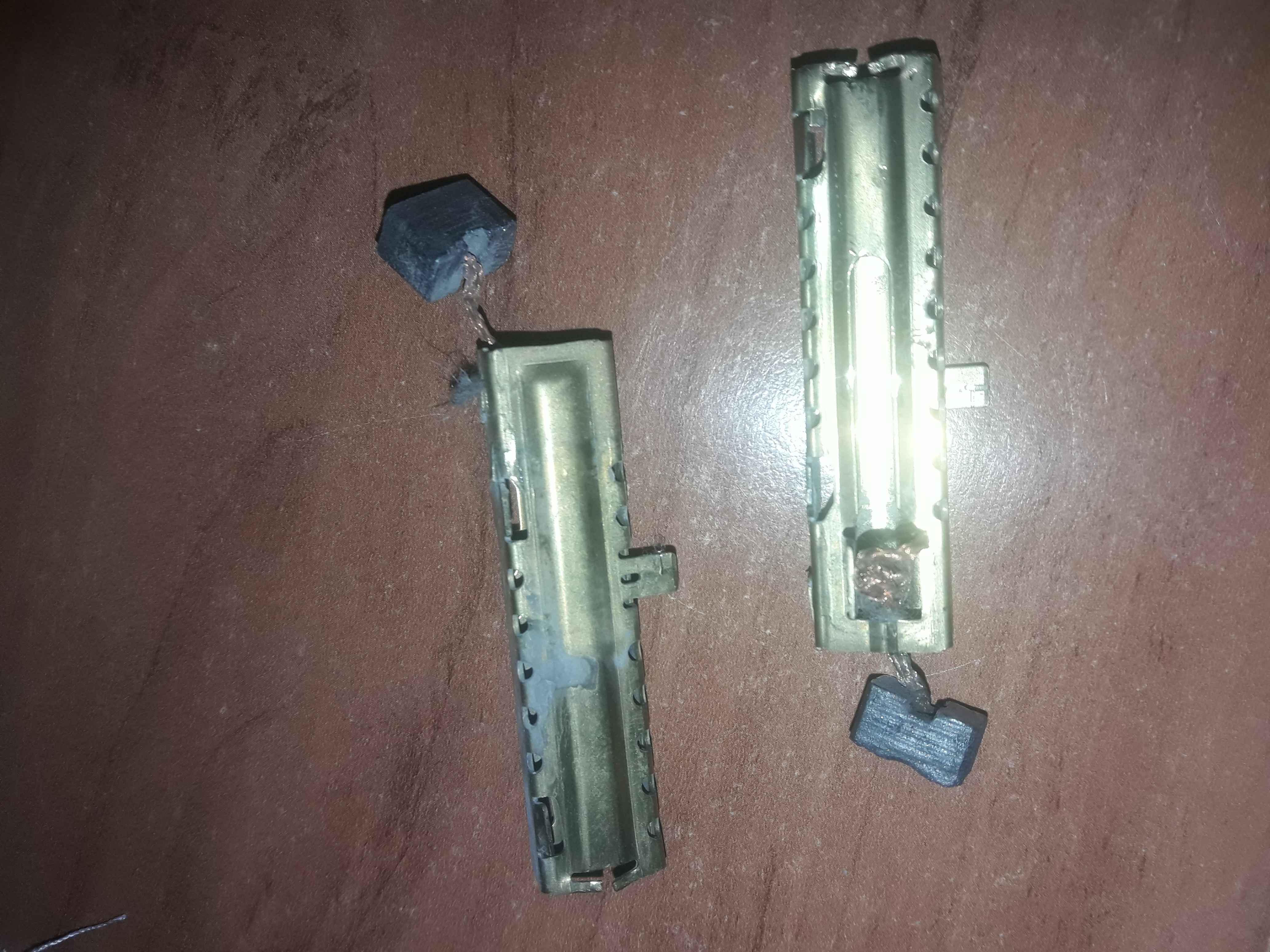 С остри клещи внимателно изправяш огънатото при пружините на четките.