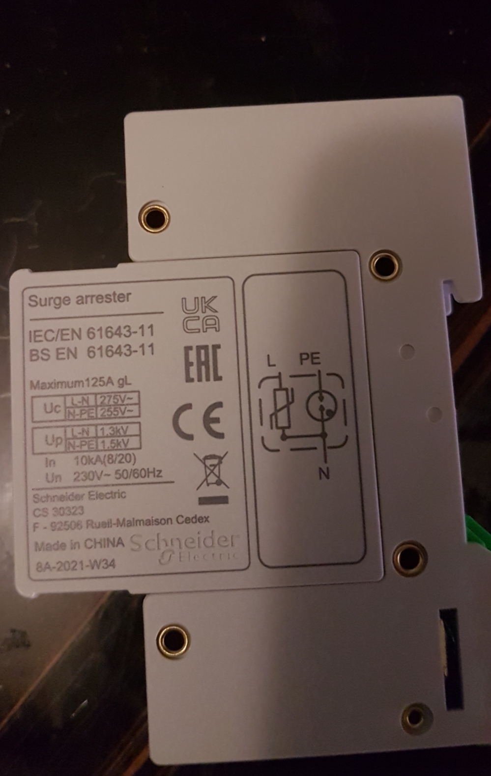 Ето снимки на отводителя. Ако разделя PEN на PE и N и ги свържа на трите клеми на арестера, няма ли да е по-добре? И да добавя допълнително заземяване на PE шината.