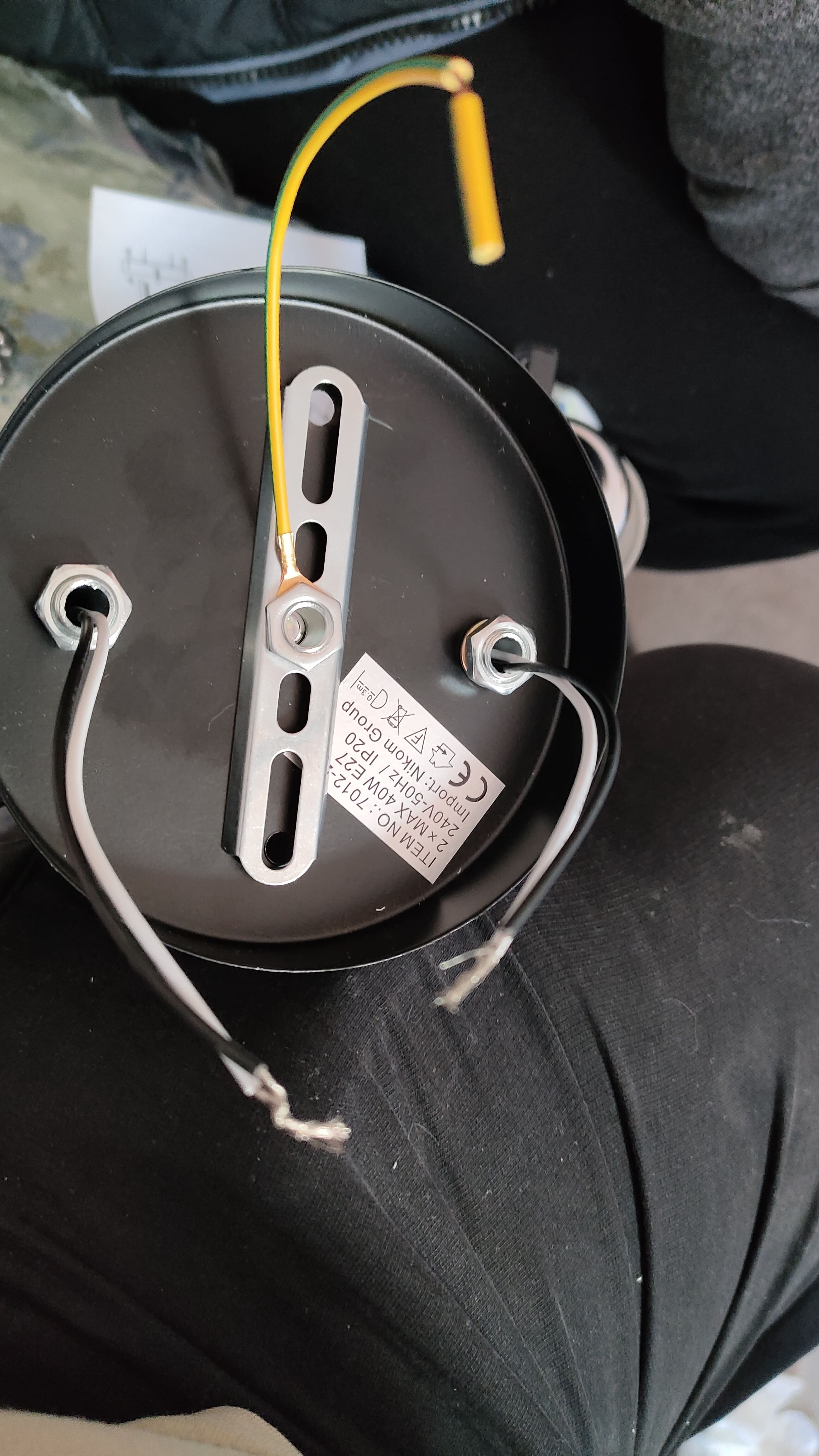 Бихте ли ми казали как да вържа полюлея към трите кабела от Ел.мрежата.От две места на полюлея излизат бял и черен кабел които са усукани и един жълто зелен който е заземяване.Тези усукани кабели да ги свържа към устър климата или да ги разделя, бял с бял и черен с черен?