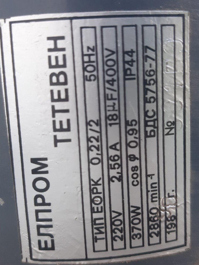 Прилагам снимка на етикета на двигателя (извинете, не мога да накарам изображението да се завърти). Търся и електрическата схема, ще я добавя когато я открия.