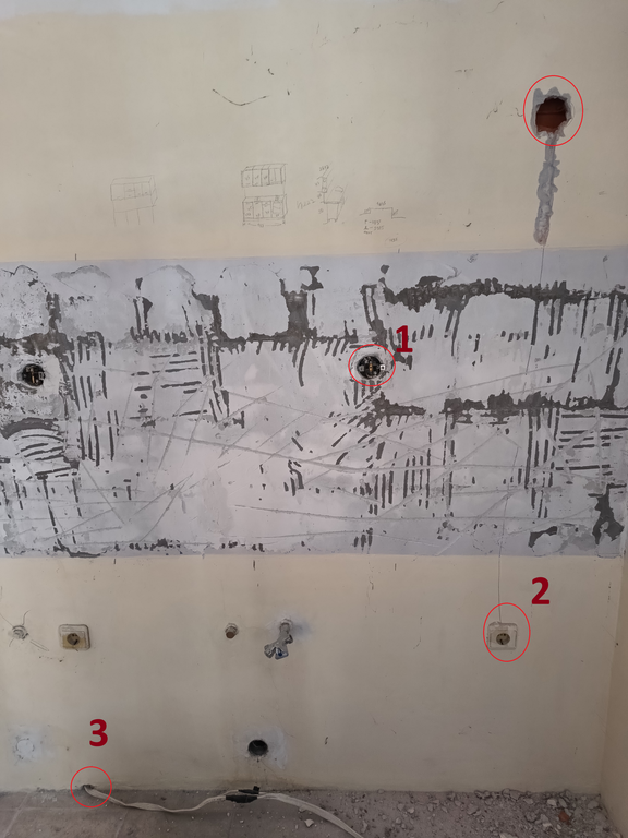 При вариант 2 пътят е малко по-дълъг, там ще има вградена фурна и плот и не държа да имам контакт, а само захранващ кабел, което е по лесен вариант от 1 според мен