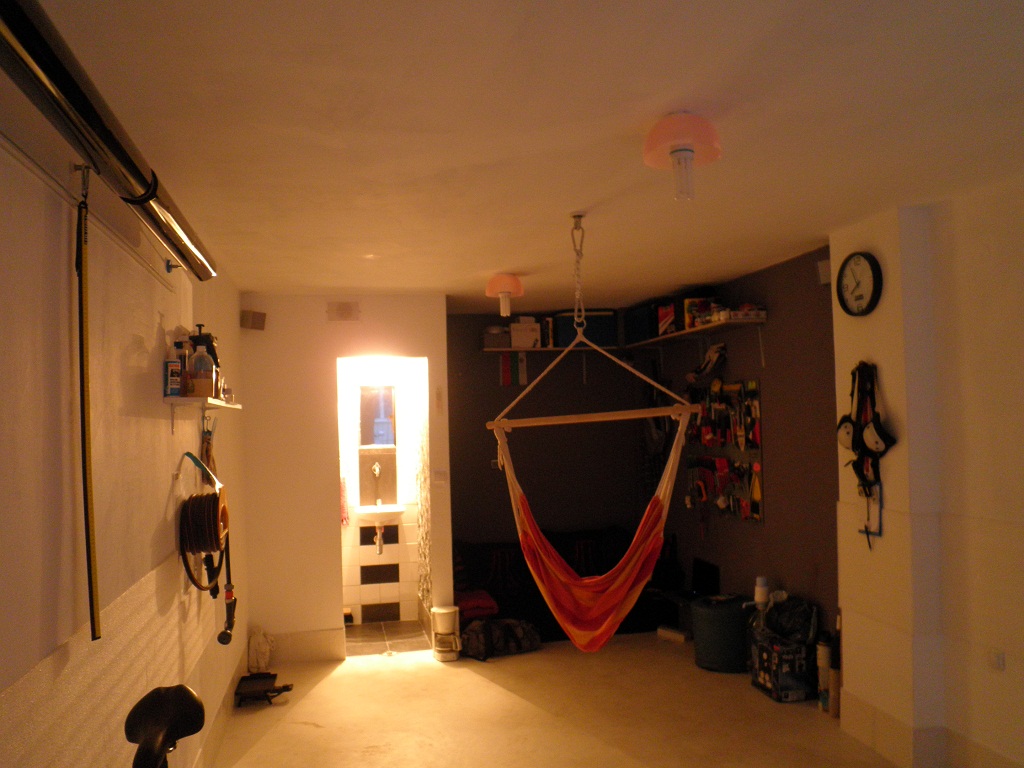 Останаха някои неща още за довършване като: хладилник, боксов чувал и сгъваем гладиатор вляво от тоалетната, но поради пренасочване на средства към друг приоритетен проект, ще ги отложа за по-нататък. :)