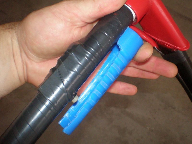 Mного е идейна пластмасовата дръжка,при метална такава се случка да те ритне магарето...Чудя са защо си изрязал предпазителя така?Не е ли опасно да метне някой камък?