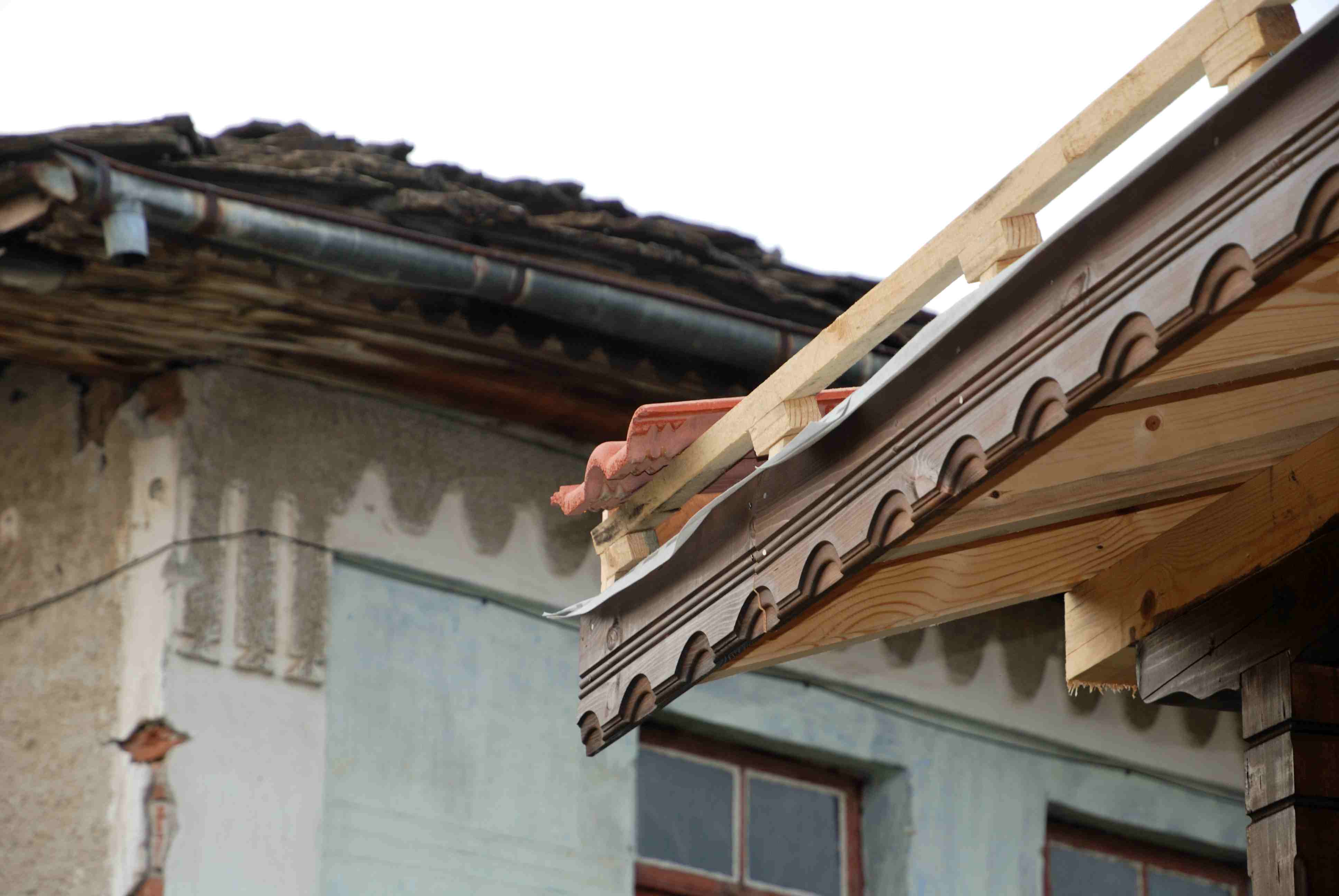 Челни дъски, ламаринена обшивка, улуци (ако има) се правят преди мушамата.