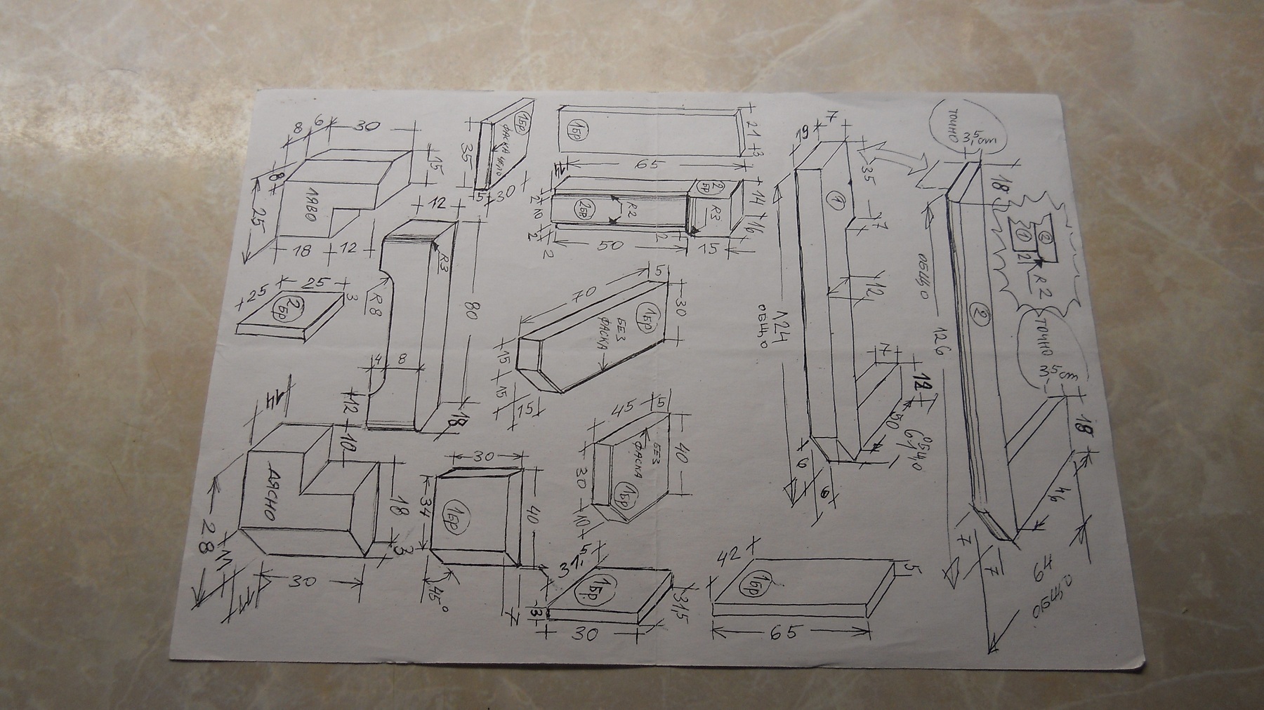Да преди 12 г масива особенно врачанския варовик беше ефтин я го направи сега от масив както е на скиците и ще удариш дупето в тавана. :)
