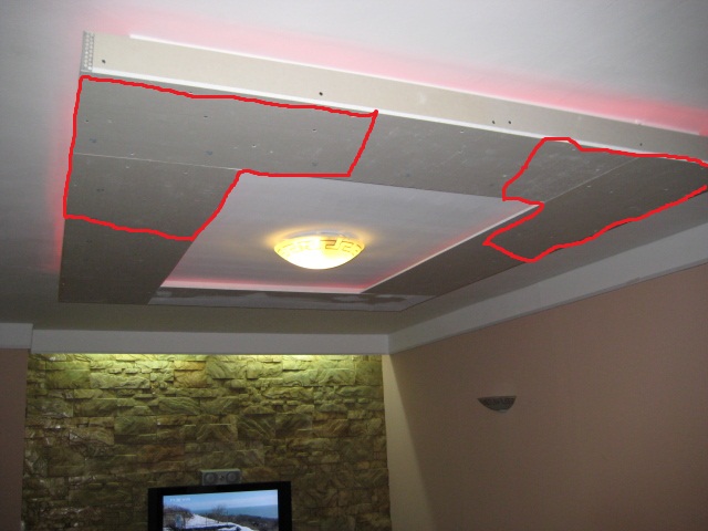 Реших да правя и аз някакъв ремонт и...започнах. Ръцете(и двете) са ми на дълбоко в г... но понеже съм циция започнах сам.Отидох в Бриколажа,купих камъните,момчето ми обясни как се слагат и...започнах.Камъните криво ляво ги сложих.Сега ми казаха че се мажели с някакав лак-придавал мокър ефект и било готино. След това започнах тавана,тъй като беше целия олюпен и реших малко да поскрия дефектите.Измислих си форма на 2 на 3 и тъй като през живота си не съм докосвал гипскартон ми отне около 2 седмици да направя изчисленията и чертежите.Монтажа на железата ми отне цял ден,тоците още един,а картона(с булката заедно) 15,20 минути. Ще има и 5-6 лунички за които съм прекарал тоците предварително.И общо взето съм дотук.Средния панел не е шпаклован,само замазах видийките и го боядисах.Само че за останалата част ще си иска шпакловчик,пробвах се сам,ама..... Та така.Очаквам доста критики,тъй като нито съм чел как се прави,нито съм искал съвет и помощ от някои.Но...стига приказки-каквото,такова . Една шпакловка и е 6