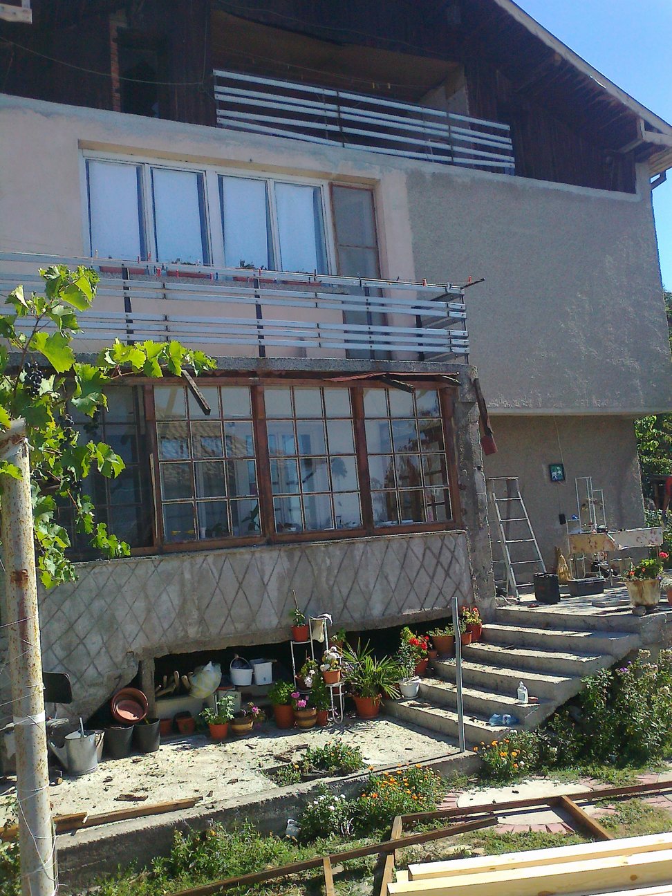 И така,терасата ни беше много тясна(широка само 1метър и дълга около 5м.).Решихме да си я разширим за да стане удобна за ползване.Да поясня,че тук става въпрос за терасата на втория етаж на къщата,нея ще разширявам,а долната тераса получава навес=бонус.И сега снимките :)