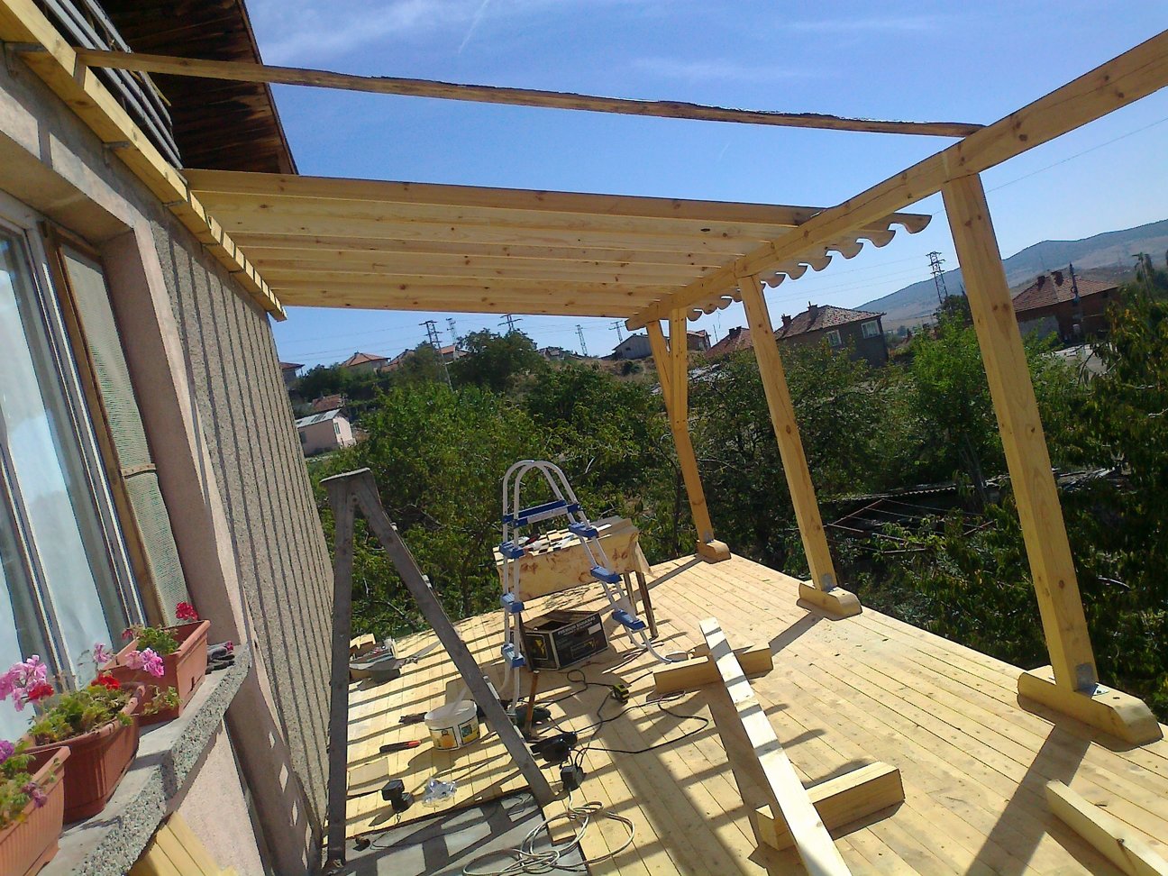тук ще ви покажа как си разширих терасата и под разширението се получи удобен навес.