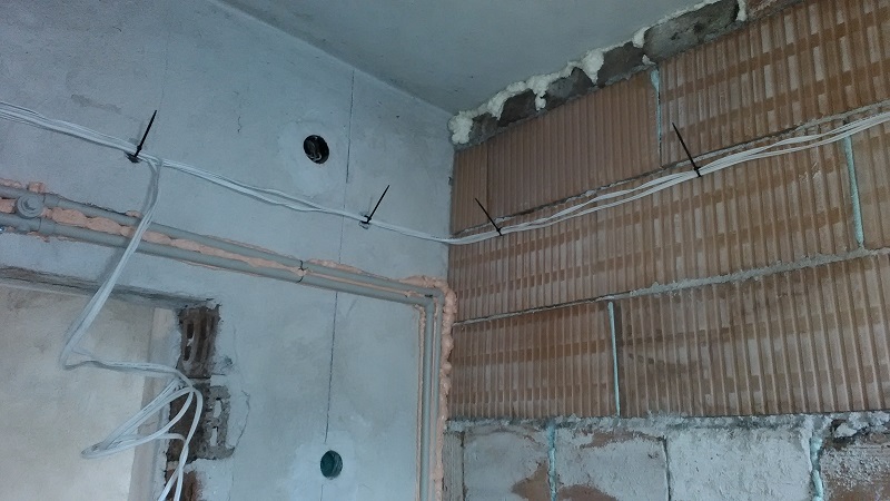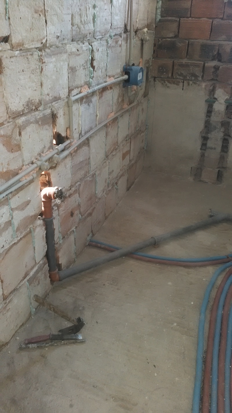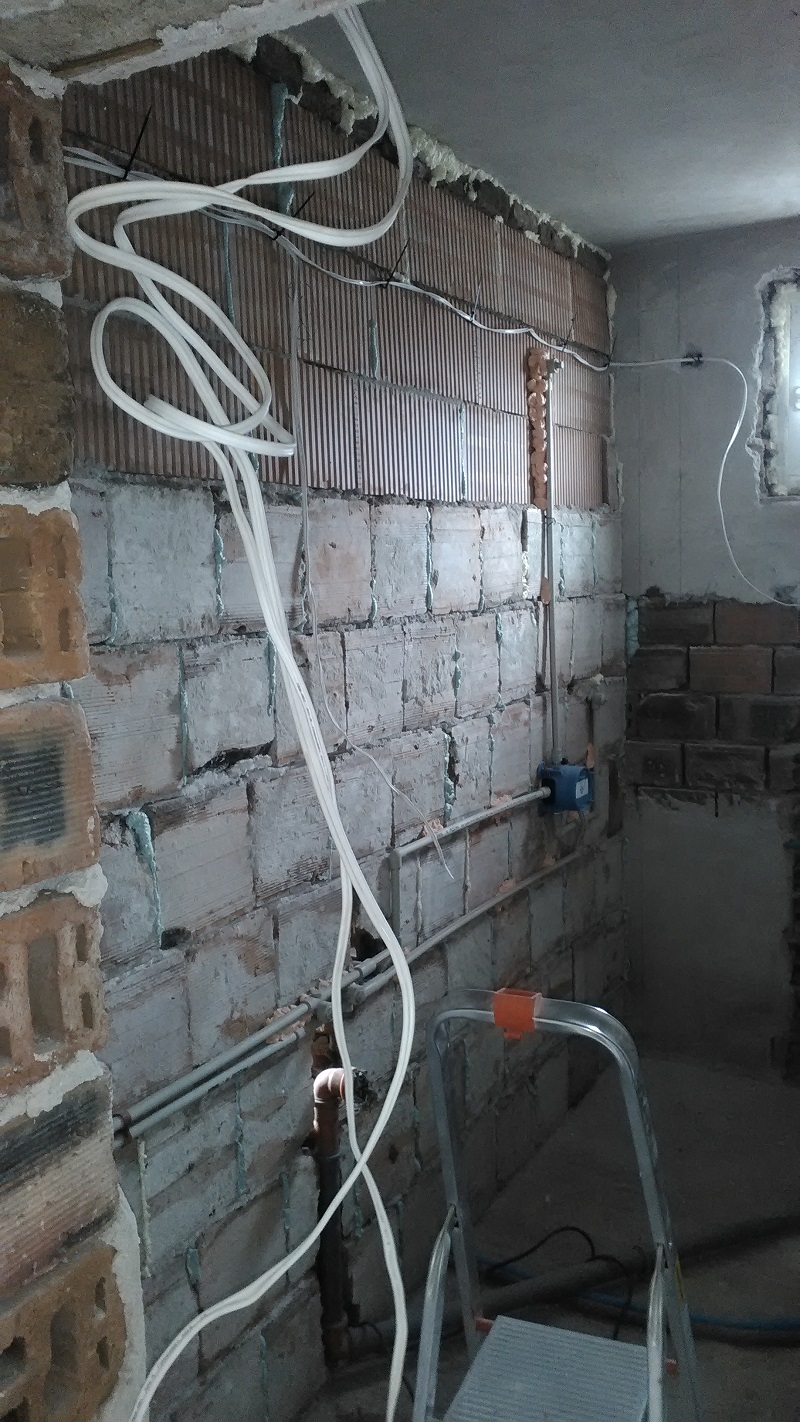 ...Междувременно, започнах работа по отделянето на банята, иззидах преградна стена със старата четворка, която ми остана от бутането на стената между хола и кухнята.Разбира се до взех малко поротермчета, за да докарам до тавана получи се малко неугледна стеничка, но ще я затварям с картонец