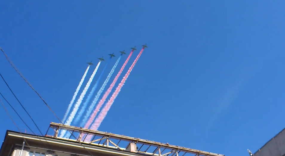 Днес покрай сградата авиация направи тренировката за парада, много яко беше.