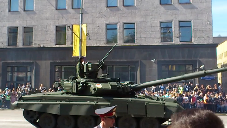 И по този повод обявихме почивка от работа, и понеже Червения площад е за богоизбрани в този ден, отидохме на странична улица да погледаме парада на военна техника. Една детска мечта се изпълни :-D