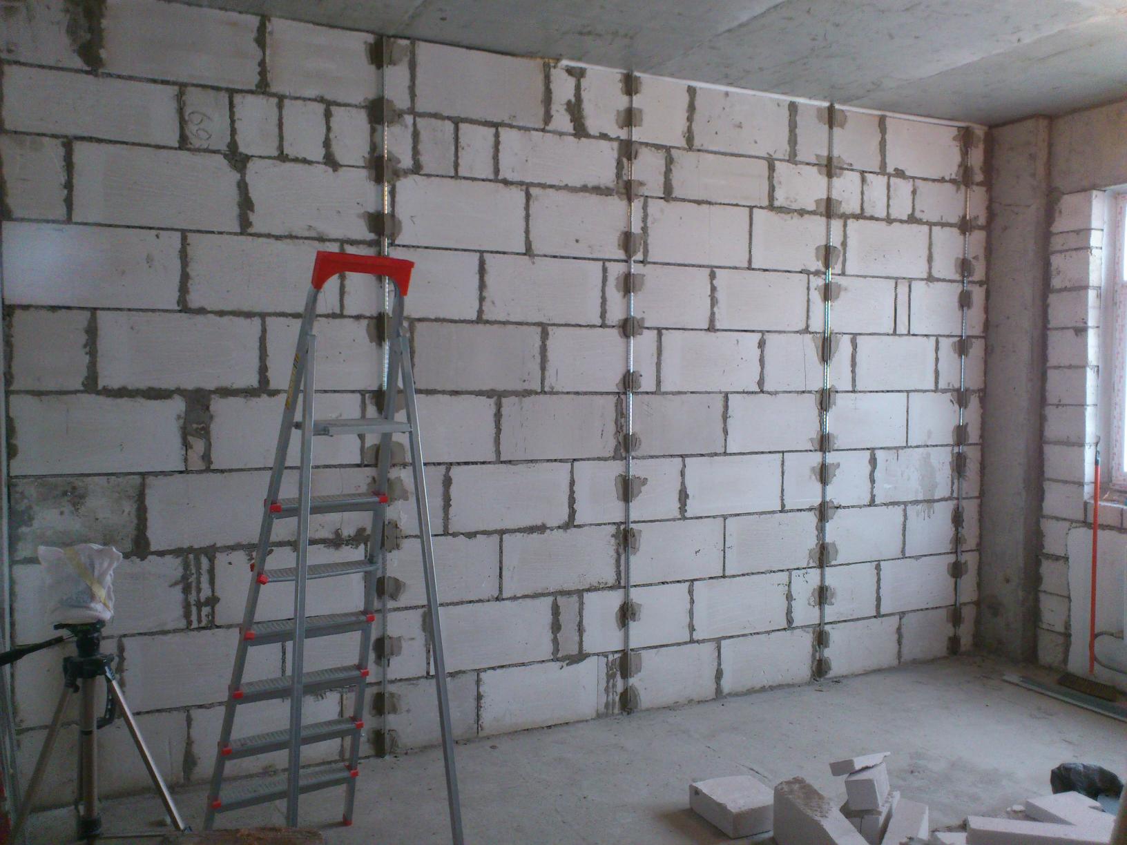Говориш за фусове? През един ред и към бетона и към вече направени стени от итонг.