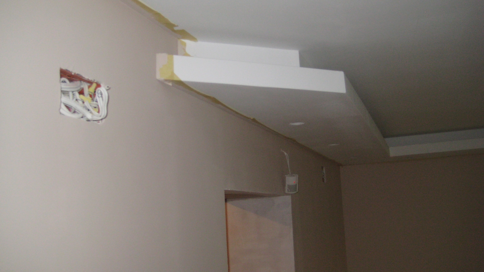 Боядисването мина през следните етапи (ако някой като мен, аматьор се интересува) - бялото е ясно, отсичана на всички гранични зони с лента за боядисване (първо се колебаех дали да я използвам като се старая повече по ъглите, но след тояно 20 см опити се само уверих че е наложително и по-ефикасно ако ползвам такава лента-тиксо), и две ръце цвят за стените...