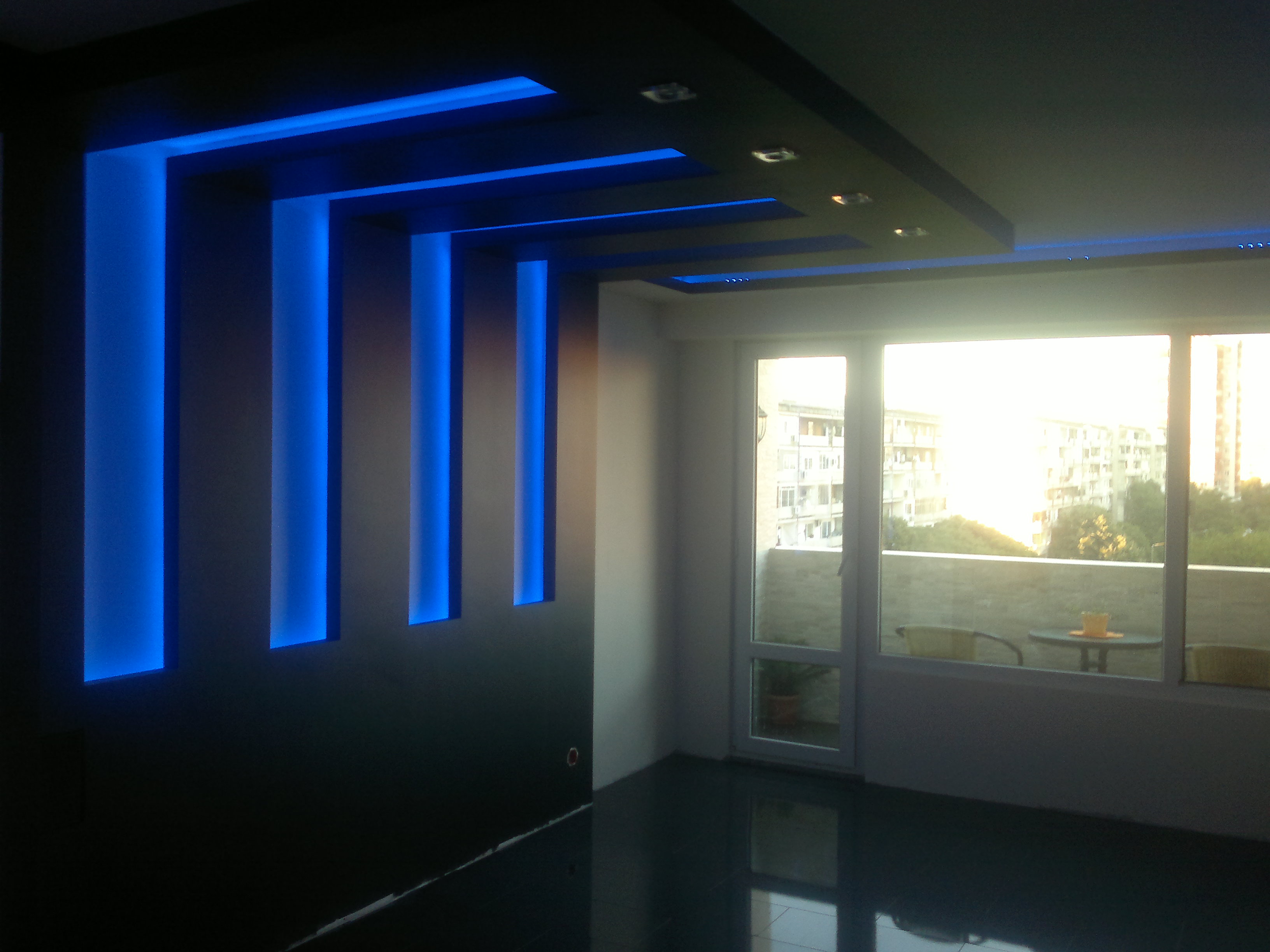 Първоначалната идея беше това - http://www.obiavi.bg/UserImages/obiava_0000082555.jpg . А това е крайният резултат - http://martin318.snimka.bg/architecture ... hol.683653 - на места скритото осветление изглежда лилаво,но е синьо. Получава се заради светлината... Моля за мнения