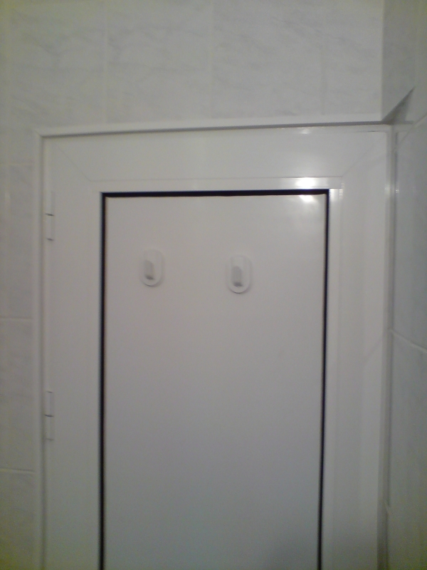 Време е да кажа, че в банята нямаше и един прав ъгъл. Стената между банята и тоалетната е под 70градуса и до вратите им, гипсовата стена е скосена до 2см. За да може да се отварят и двете.