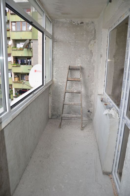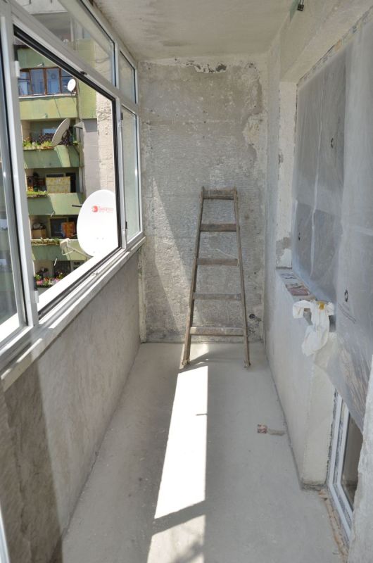Поради ред причини реших да се пробвам за първи път да направя нещо такова сам (с методическите оказания на баща ми). Панелен апартамент, това е балкона на спалнята ми. Предишният собственик беше поставил алуминиева дограма(доста грозно изпълнение за мен), под нея имаше нещо подобно на изолиращ сандвич от ламарина и нещо като стиропор/изолация между тях. От къде е не зная, но беше хваното здраво с дубели, трудното махане дойде от факта, че бяха ръждясали главите и отвиването или рязането беше невъзможно, голям гози крак, чук, секач и много пот! Снимки от там нямам...