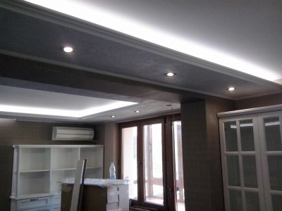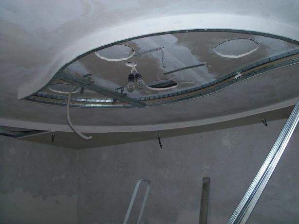 За да е още "по- свежо"- с кой акъл реших тавана да е с гипсокартон. За да ми е по- трудно реших да има и фигури с лунички и скрито осветление- да сме в крак с модата.