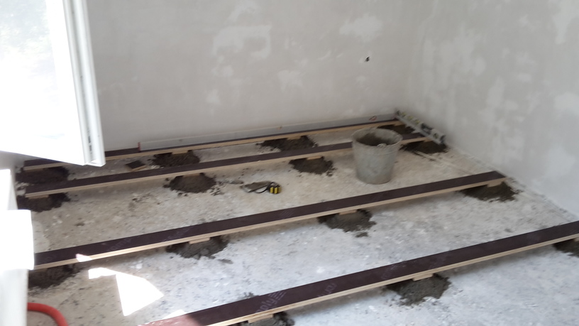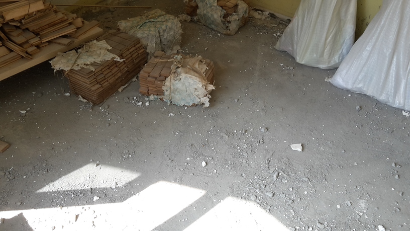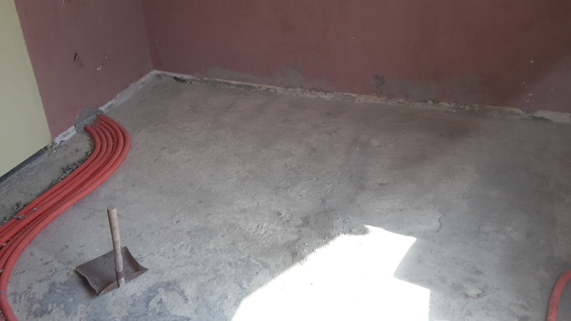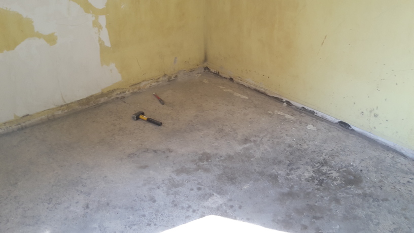 Преди да почнем имаше дебела, крива и много тежка замаска - не земновлажна, а направо бетон, армирана, голям зор, докато я изкъртим. Къртенето се наложи не само защото много тежеше на калпавата конструкция на къщата, но и защото ако тръгнехме да я изравняваме нямаше да може да се отваря вратата на терасата.