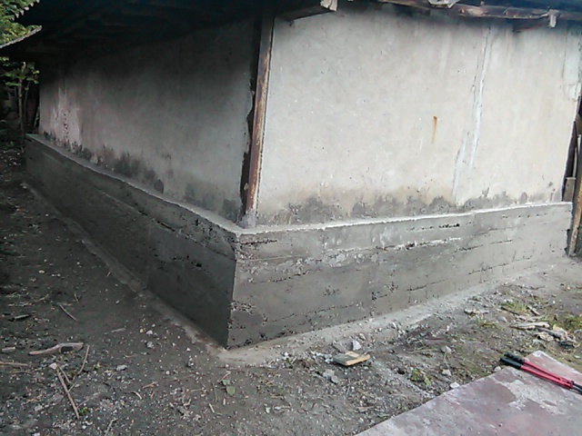 Привет, искам да поукрепя една селскостопанска постройка, по- точно в основите и 70-80 см. нагоре, защото са се подронили сериозно. Значи до тази височина е нещо като много слаб бетон или варов разтвор с цимент и камъни, ширина на една тухла единичка. Та окопах около 15 см. отвън около основата в земята и забих готова арматурна мрежа 6 мм. Нагоре ще правя и кофраж на около 70 см. височина, до там е стария " бетон" и после е "доломе" стена.
