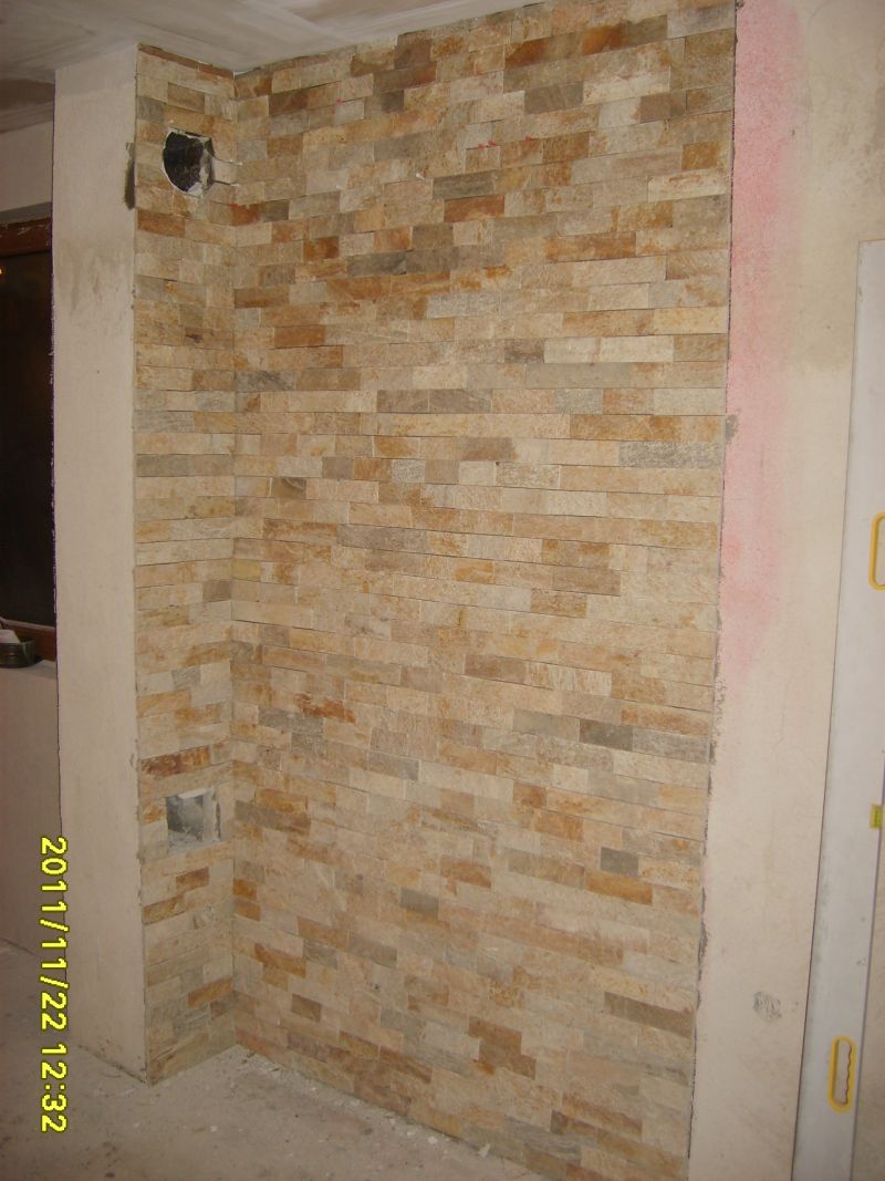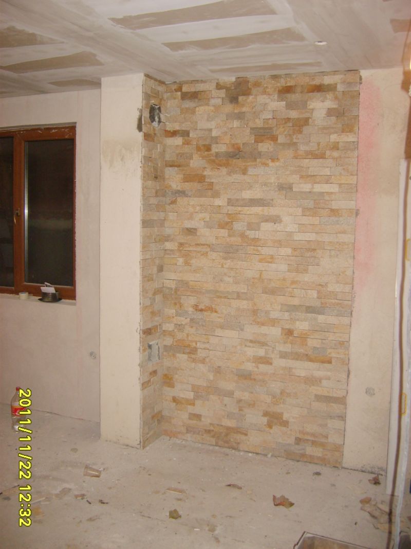 Каменно пано от естествен камък . Доста играчка падна по него , но ефекта му е добър.
