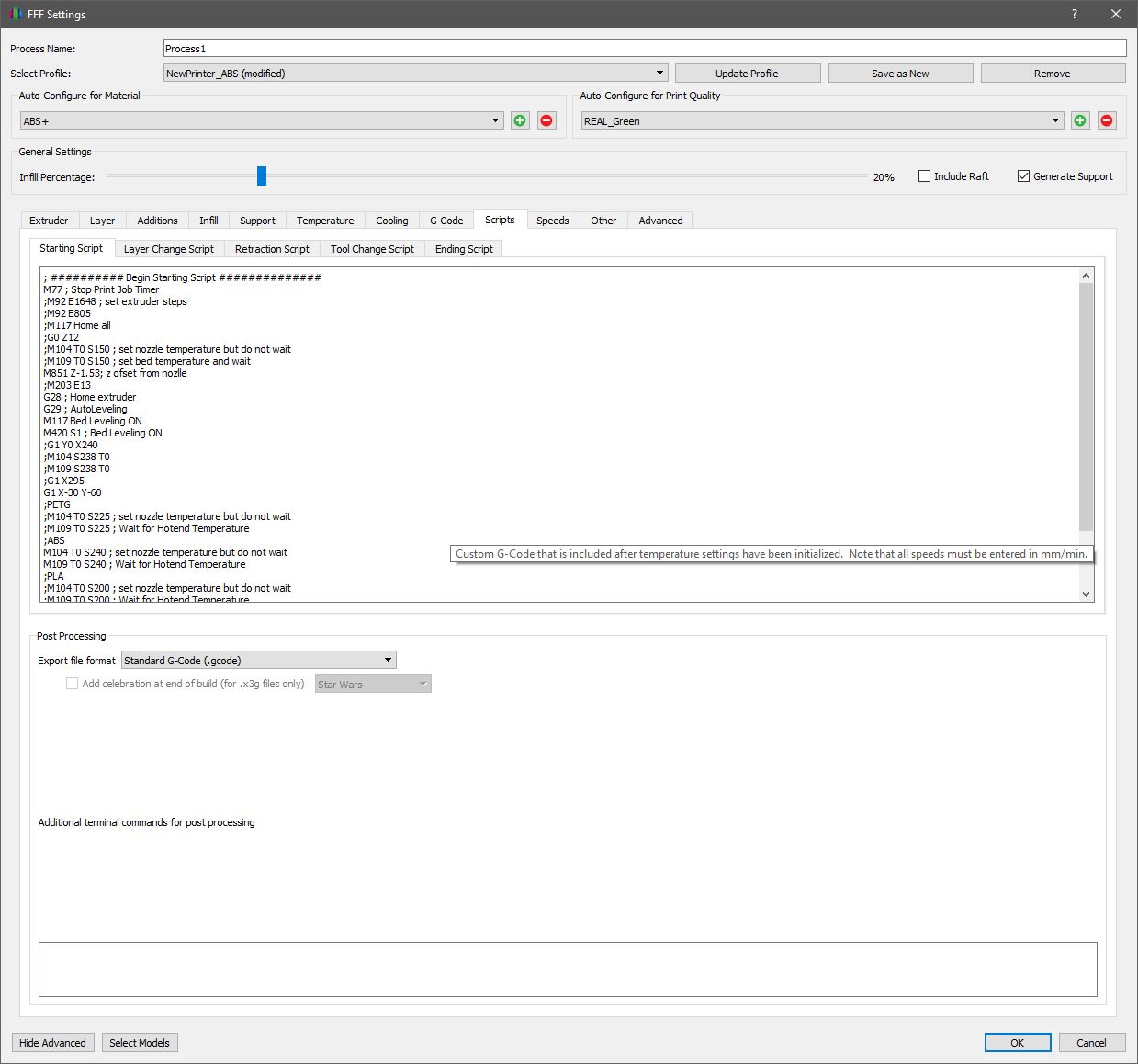 Обърнах внимание,че нямам предвид Custom G-code - Start,End.