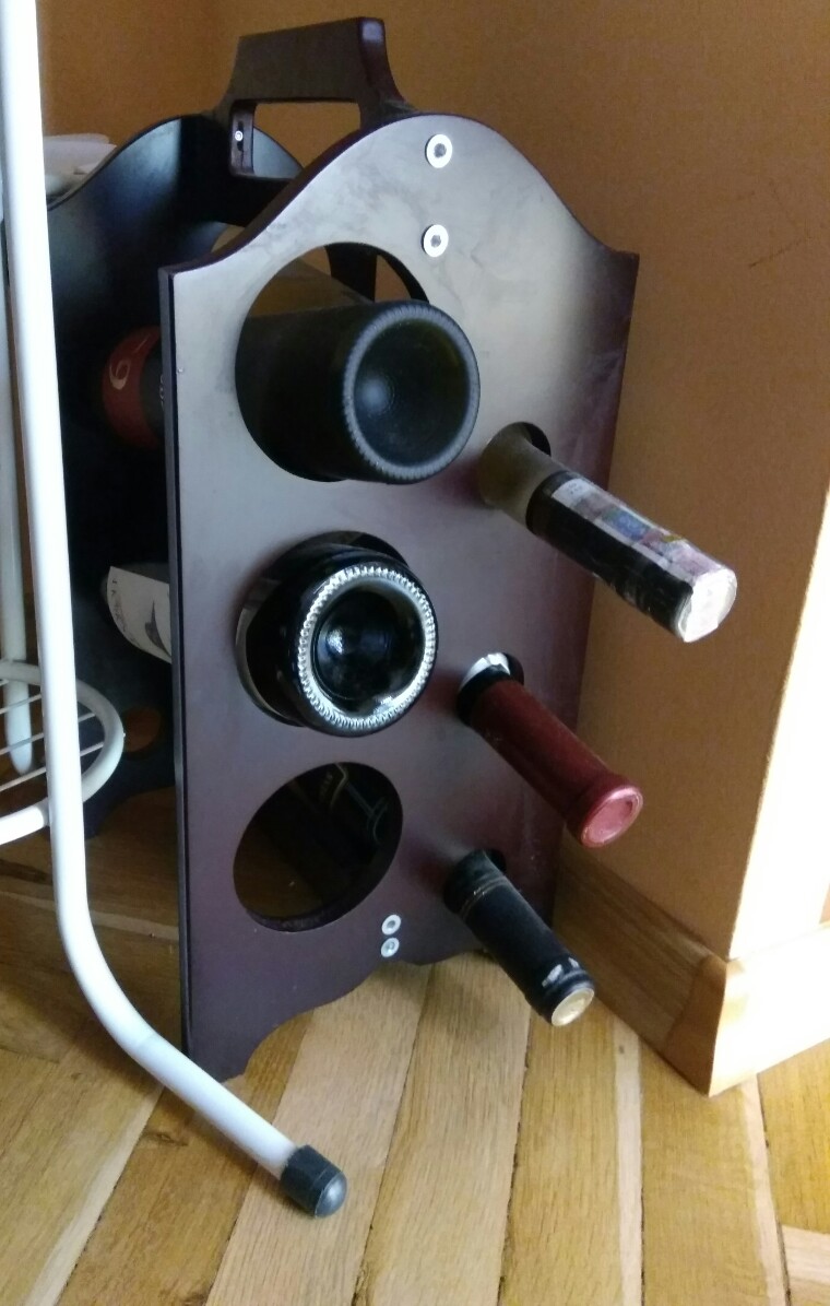 Има различни бутилки за вино, като мога да премеря на моята стойка какъв размер са сложили за универсален размер. Стойката е широка от едната страна и по-тясна и по ниска от другата и си висят бутилките, заклещени от към гърлото.