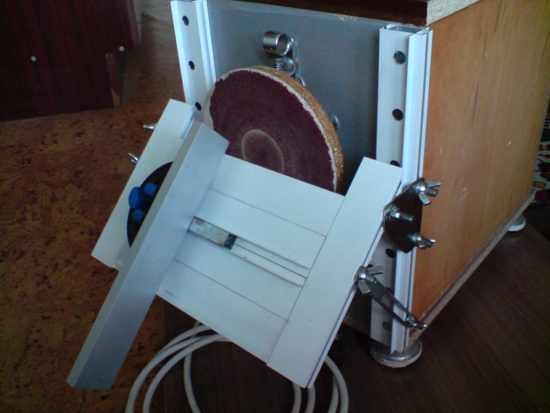 Мерси, Еди. Ако ти се разделя с 200-300 лв, има готови такива в големите магазини вериги Баумакс и в Бриколаж съм виждал. Малко по евтини има в Англия, всички са комбинирани и с лентов шлайф, но шкурката им се намира трудно в бг размера е 150мм и се лепи с двойно лепещо тиксо. Но са слабички като ватове. И двата шлайфа съм ги правил с български двигатели от Перла, не съм успял да ги спра с нищо засега. Проблема им е, че трябва да стържеш лятото не повече от 30мин. Сега зимата го няма проблема със загряването. :-D