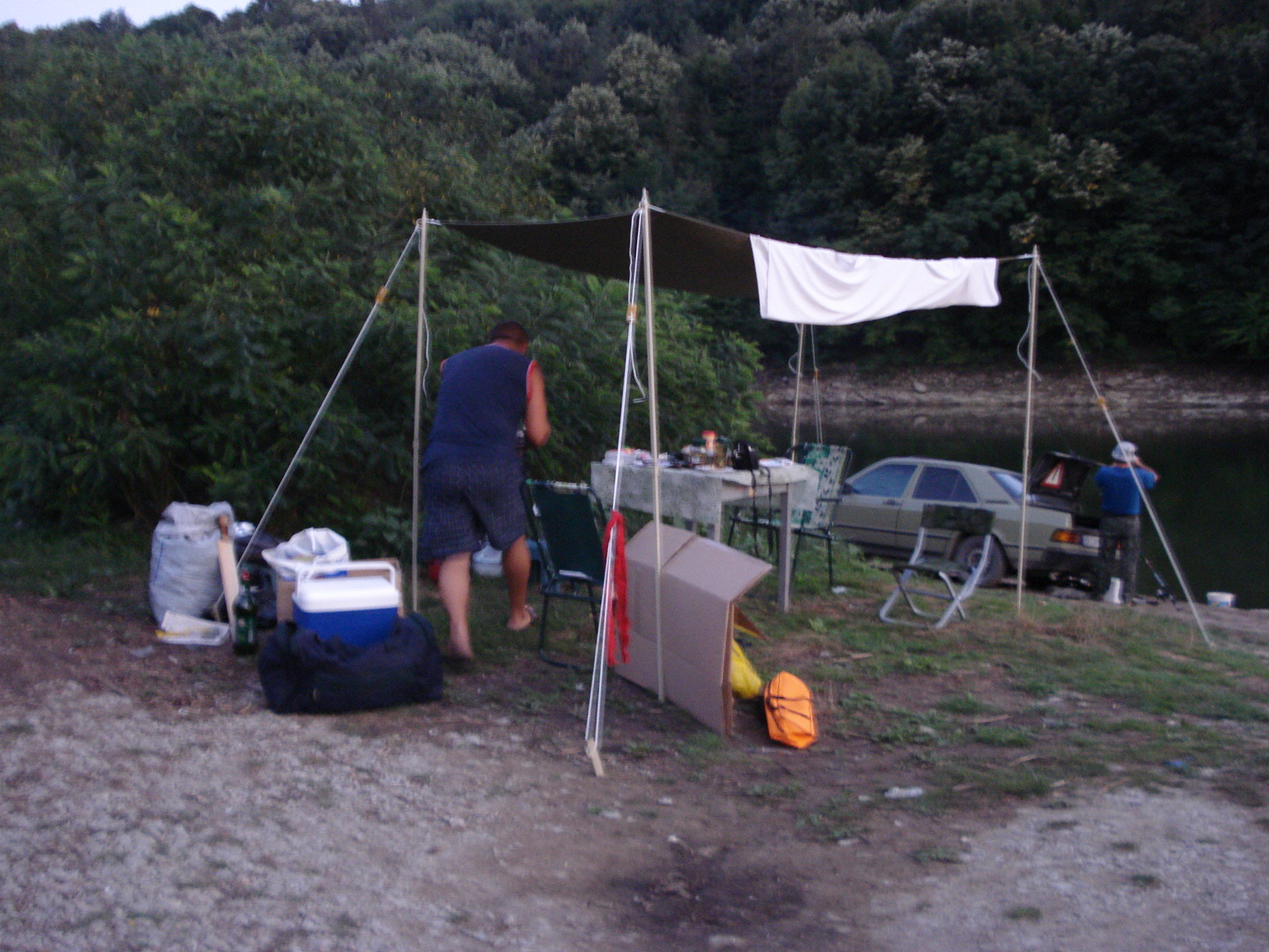 Покрива си е от чист брезент. Цялото чудо е по скоро за сенник и защита от росата, отколкото за защита от дъжд. Ако завали това проваля излета - свиваме и се прибираме и в къщи продължаваме :prost: