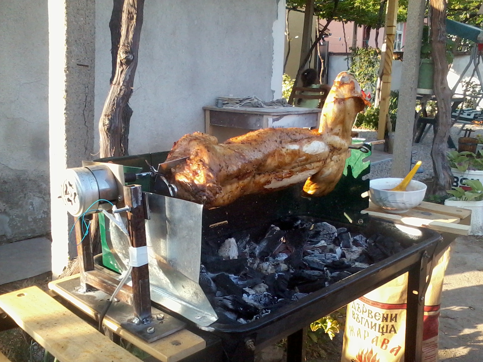 Здравейте!Не ми остана време да направя барбекюто за което питах в темата със задвижване,но ето какво сътворих с моторчето което бе предвидено за камината.А заека стана страхотен :supz: