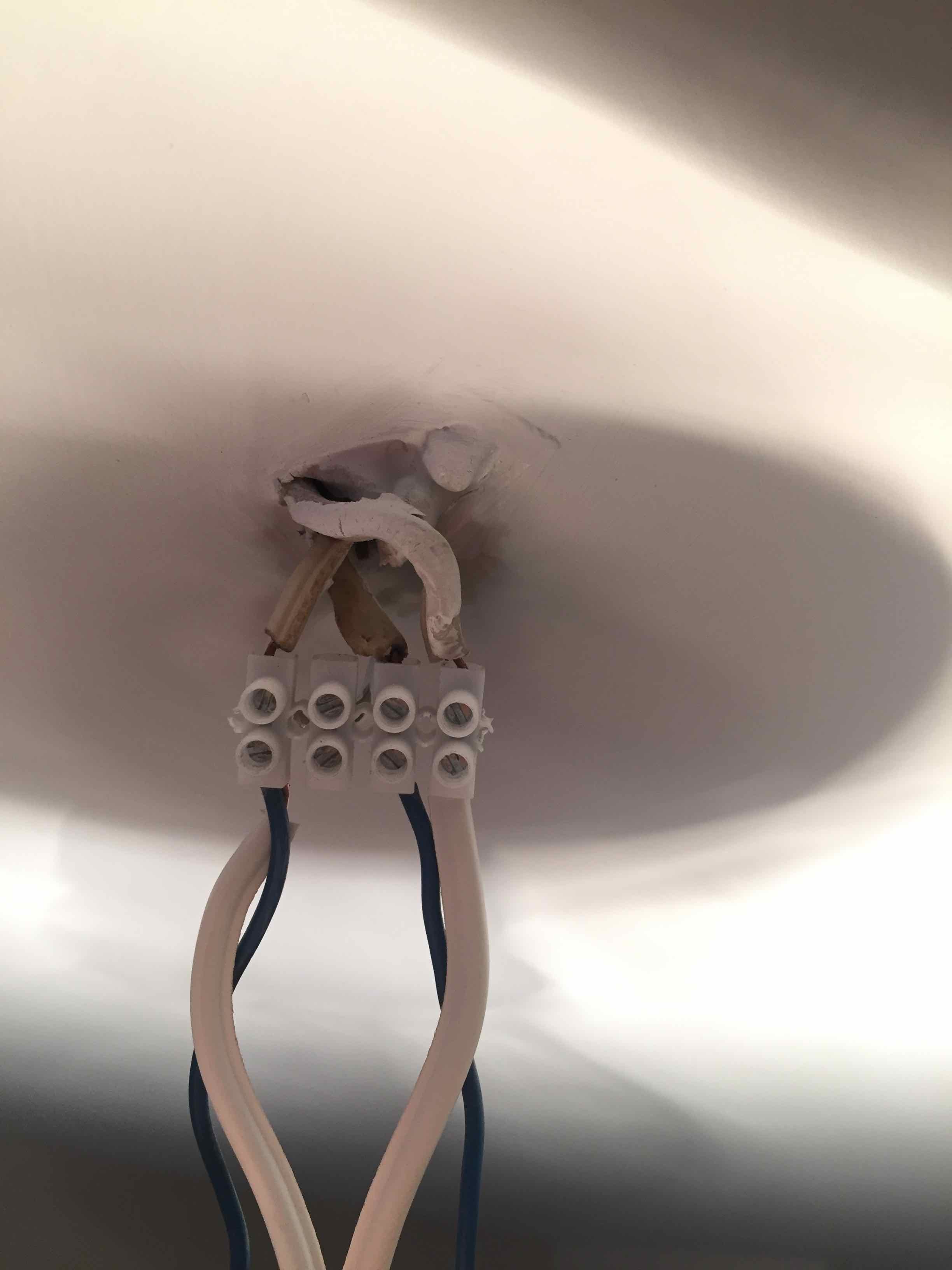 На тавана вързах 2те лампи общо в позиция 1 и другите им жици съответно на позиция 2 и 3 от снимката.
