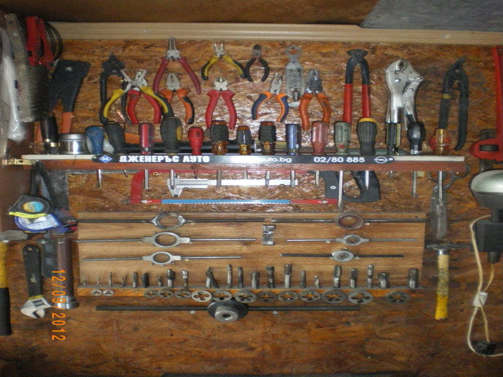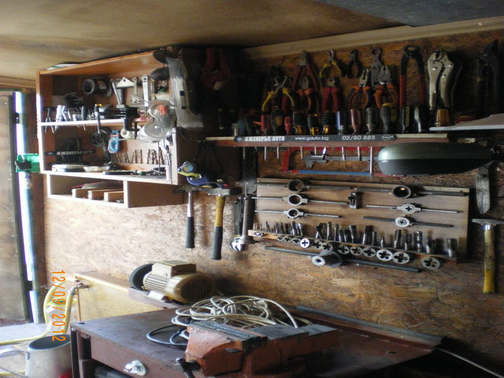 Зимъска, щом умалее работата и ми остане повечко време ще си понаредя майсторският кът и ще споделя с вас снимков материал за организиране на пространството за инструменти, криви ръждиви гвоздеи, БУРМИ, гайки и други подобни съкровища...