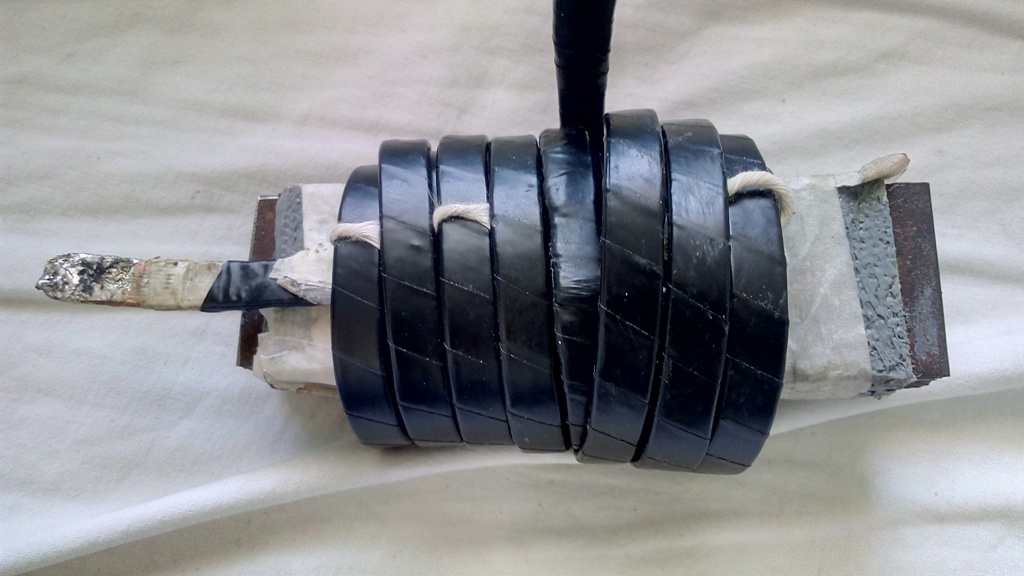 При мен шината на проводника е изолирана с TESA (изолирбанд - работна температура 90гр.). Ако се ползва проводник с изолация кл. F(155гр.), H(180гр.), C(220гр.) може да се намали сечението на 10мм2. По тоя начин дросела може да се докара до 600-700гр.