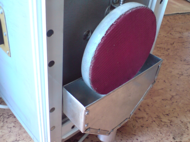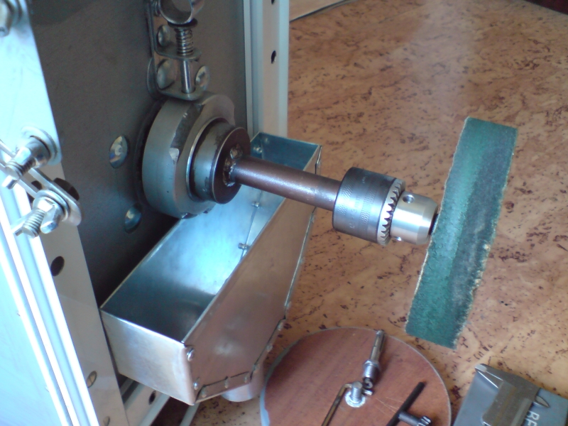 Миналата седмица най после успях да намеря материал и стругаря ми направи приспособлението за полиране и един шпиндел за кръгла шкурка. Понаправих и тенекията за аспирацията горе доле. Ето някоя и друга снимка и едно клипче как работи шлайфа с приспособлението. Поздрави.