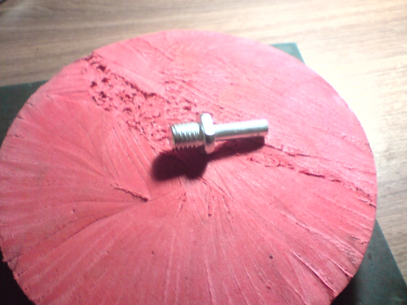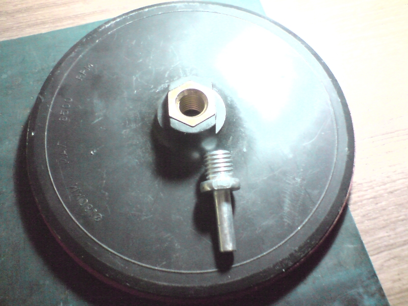 Велкрото съм го разлепил и залепил върху талашитеният диск. С него шлайфам с шкурка с велкро система. Полирам с кечета от битака, парцалените шайби си ги правя от стари памучни дънки.