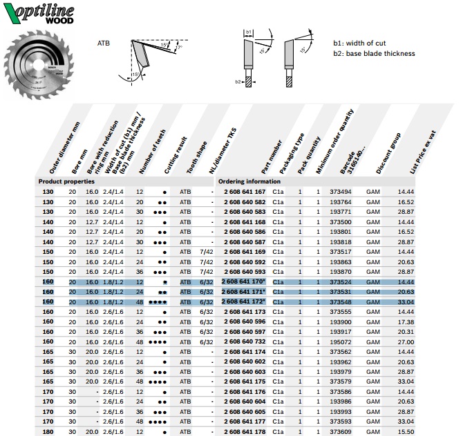 Другия вариант който ми допада е на Бош. 160мм е по-тънък, с 24 зъба е - 25лв. Следващия е с 36 зъба, дават го много добър срез за 34лв.
