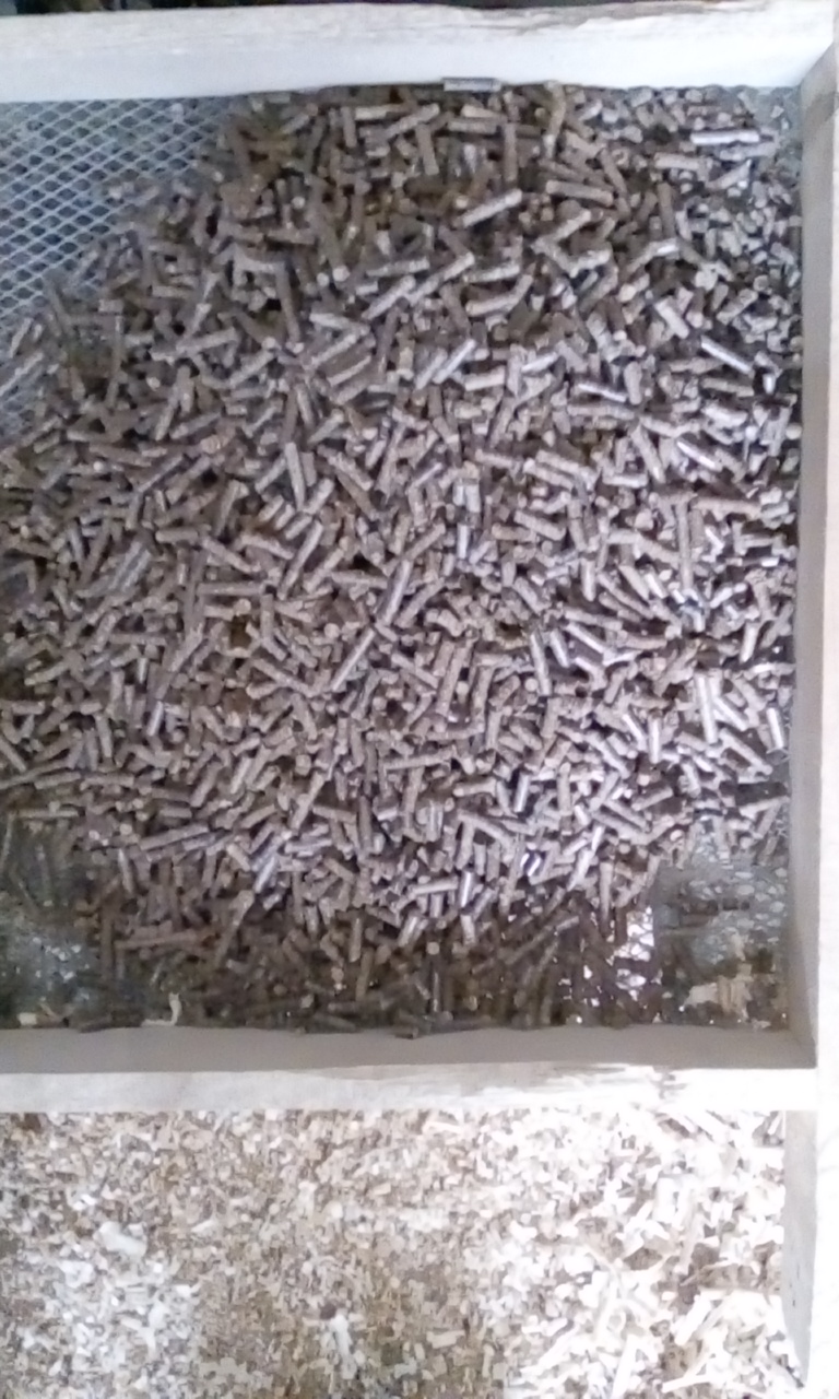 Колега gogosto не ти трябва никаква мрежа за охлаждане. Когато нацелиш точната влажност пелетите излизат безкрайно дълги и съм сложил отдолу една ламарина да ги чупи на около 2 см. Ако искаш вярвай но в момента слагам замръзнал материал който лятото посмъртно не може да стане на пелет,защото е прекалено влажен. И сега една тайна към всички колеги !!! Слагайте по около 100 грама изгоряло масло на 40-50 кг. материал и ще си увеличите производителността почти двойно!!!,но Материала трябва да бъде малко по сух. Тази вечер като пусна пак машината ще ти щракна няколко снимки как подавам и какво излиза. А шнек и бункер ще ти вършат работа само ако предварително смелиш Материала и го хомогенизираш а ако я караш като мен направо едър талаш и всякакви боклуци просто ги забрави тези неща. Лошото на несмляния материал е че в бункера и шнека от завъртането се самосепарира и виното пада отдолу а едрото остава отгоре и става една мацаница дето не ми се говори. И най-важното е пелета да излиза лъскав. Ако Материала е прекалено сух ще ти излизат едни ситни пелетчета много къси,а ако е прекалено влажен пелета като излезе от матрицата се пука и почва да се разпада. Добрият пелет излиза лъскав и безкрайно дълъг,е разбира се ако няма какво да го счупи. И така пускай смело машината с кофоватат система и смело напред и от мен да знаеш че грешката и експеримента са най-добрите учители.