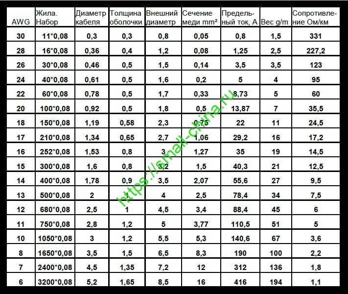 проводник 14AWG ,около 2,07 кв.мм.Допустим ток 55А.