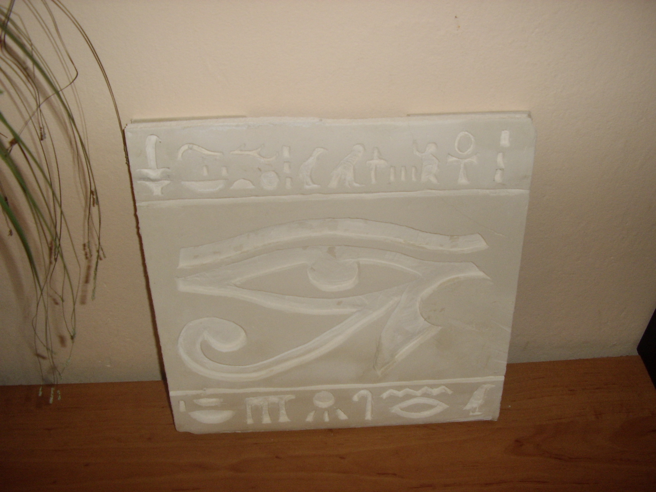 парче гипс картон , комплект резци , 2 бири и 4 часа.....сбъдната мечта , египетска стена с релефни орнаменти.... окото на Хор , символ на , здраве, мъдрост и просперитет. Ха дано